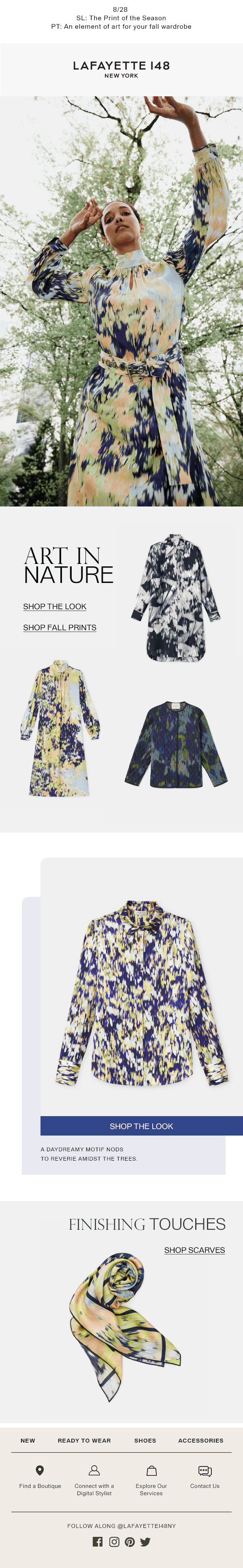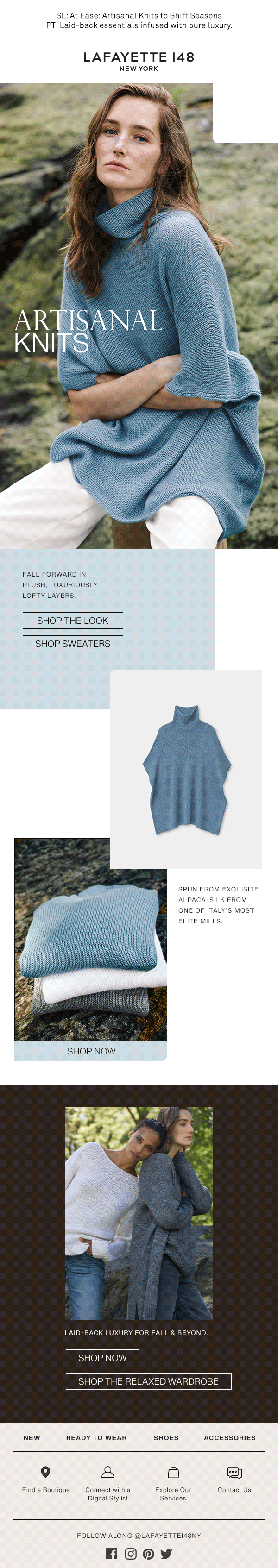 On Lafayette 148’s small in-house marketing team, my focus was elevating the brand with streamlined copy that spoke to a modern luxury audience. My focus included emails, SEO-friendly product copy, site content and pitching and creating social content about seasonal campaigns and luxury-focused content.